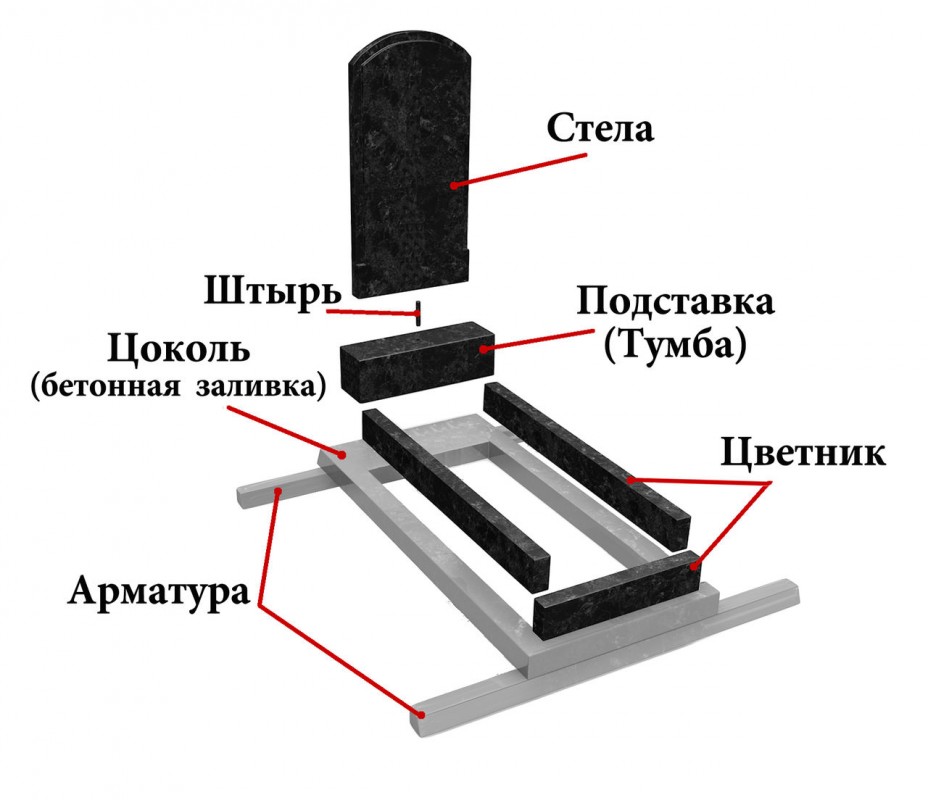 Стоимость установки памятника (стандартный комплект):